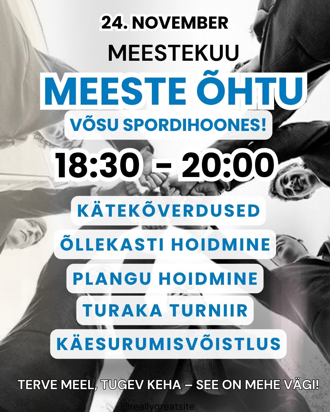 Tule 24. novembril kell 18:30–20:00 Võsu spordihoonesse ja pane end proovile meeste moodi!